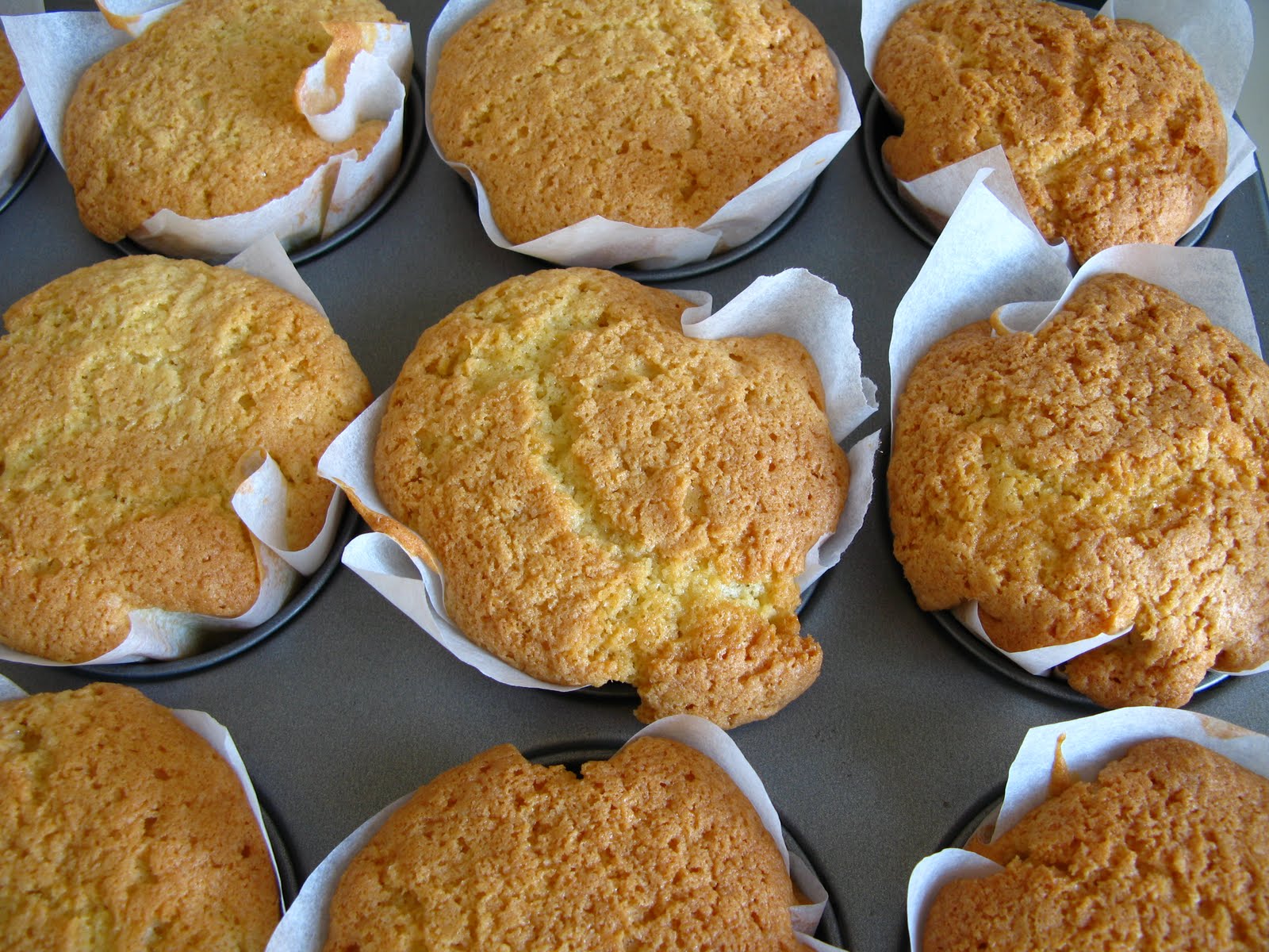 Line a muffin tray with paper cases, and divide the cake mixture between them. (I find this easiest to do using an an ice cream scoop). Bake for about 40 minutes at 150C, until risen and just turning golden.