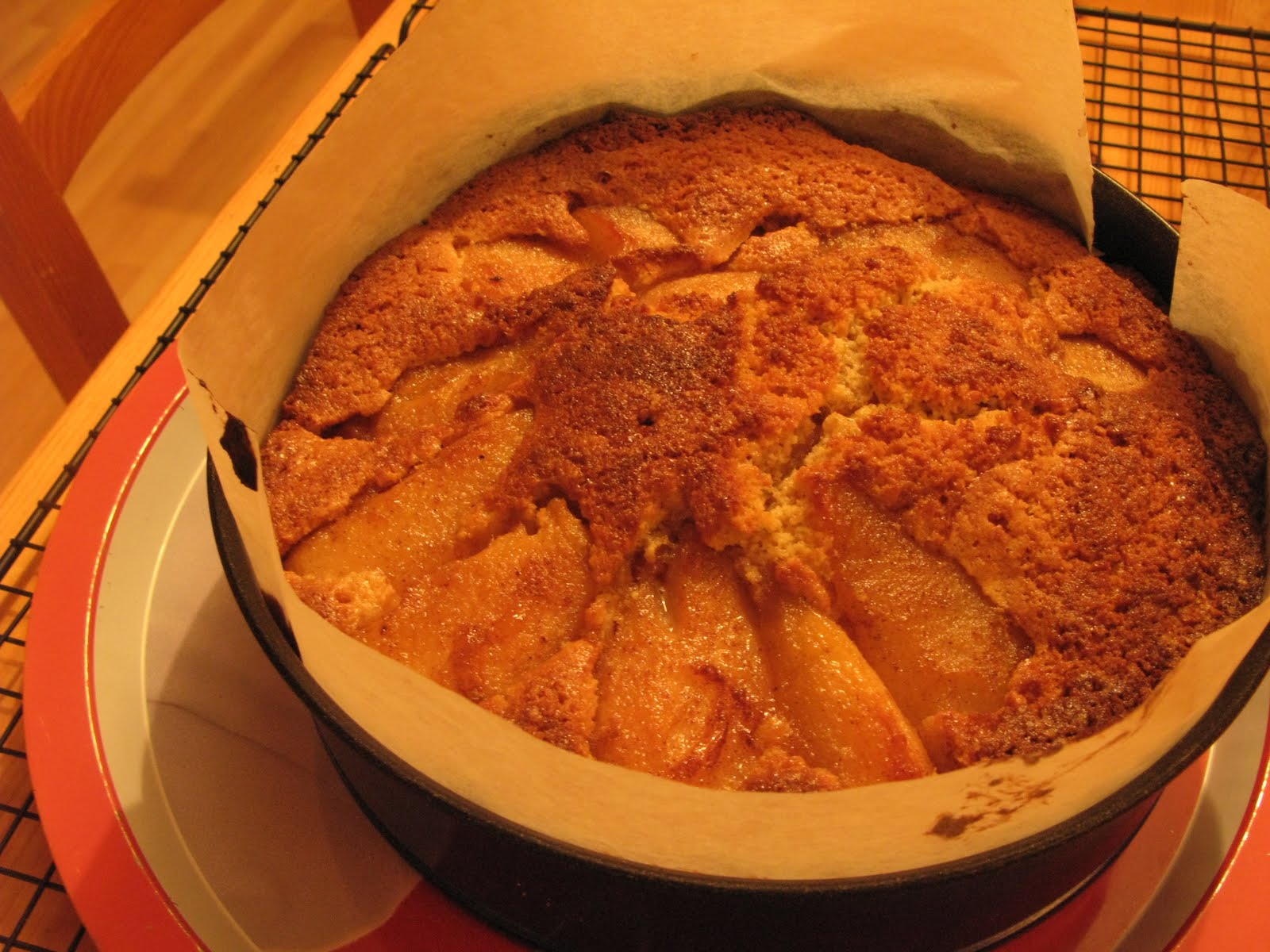 Just found this while searching for a pear cake and have added your blog to my list of Must Reads.I had terrible trouble with this recipe. (HFW's, not yours!) I used the original measurements given on the RC C4 website and oh my…it took an hour and a half to (eventually) cook, and it leaked butter everywhere. I was not the only one! The website was aflame. They changed the recipe and deleted all the raging comments. Agas full of melted butter do not smell good, apparently.