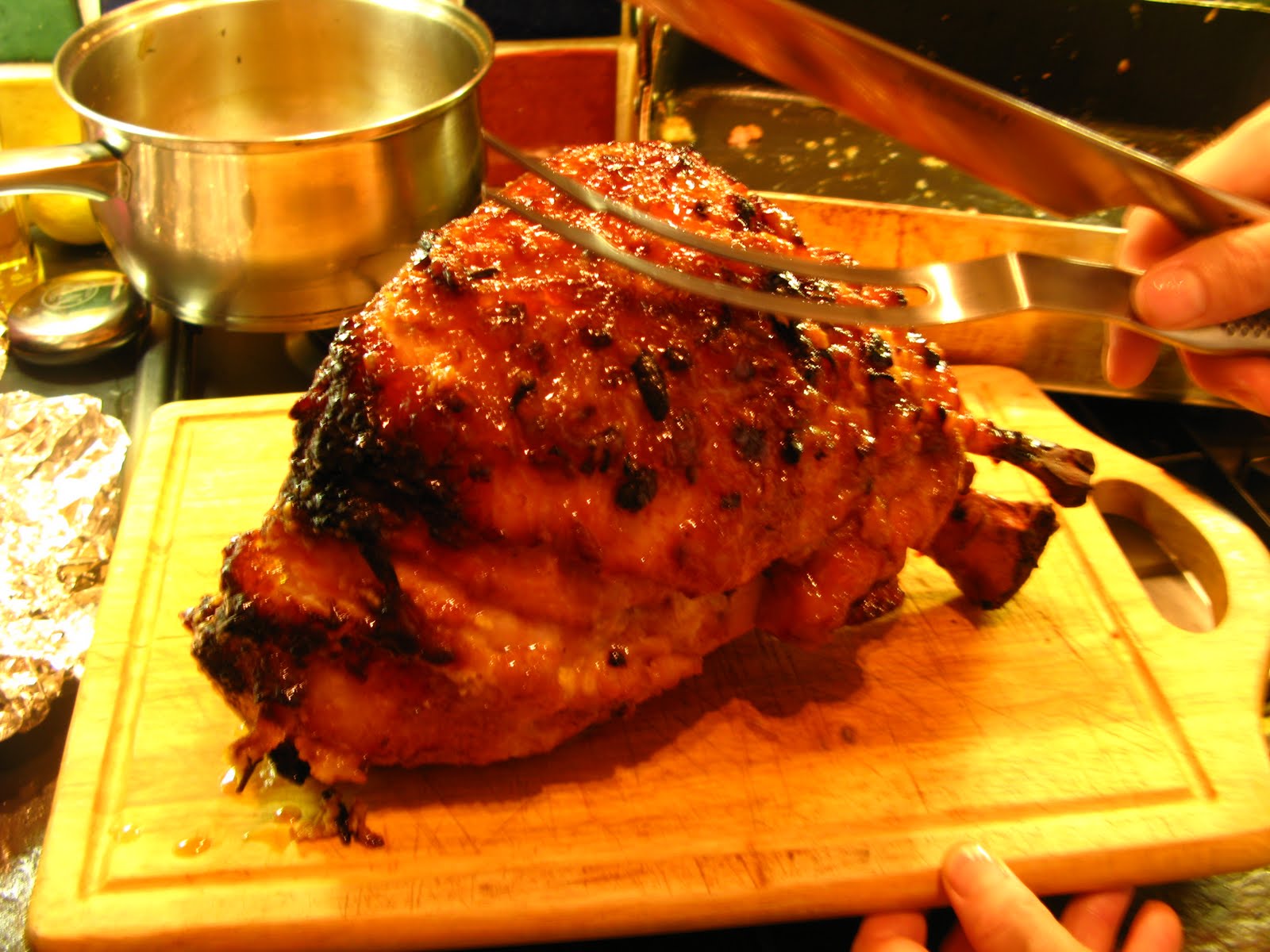 My friend S who lives in Brighton has an even tinier kitchen than me. He has put up with its diminutive size for about eight years and has finally had enough: he’ll soon be moving house. I’m so very jealous (in advance) of his bigger future kitchen. Over the years, even though his current cooking space is the size of a matchbox, he has produced some amazing feasts from its depths. Just after Christmas, he invited us down for a bit of a festive blow-out – a marmalade/mustard-glazed ham and Christmas pudding ice cream.