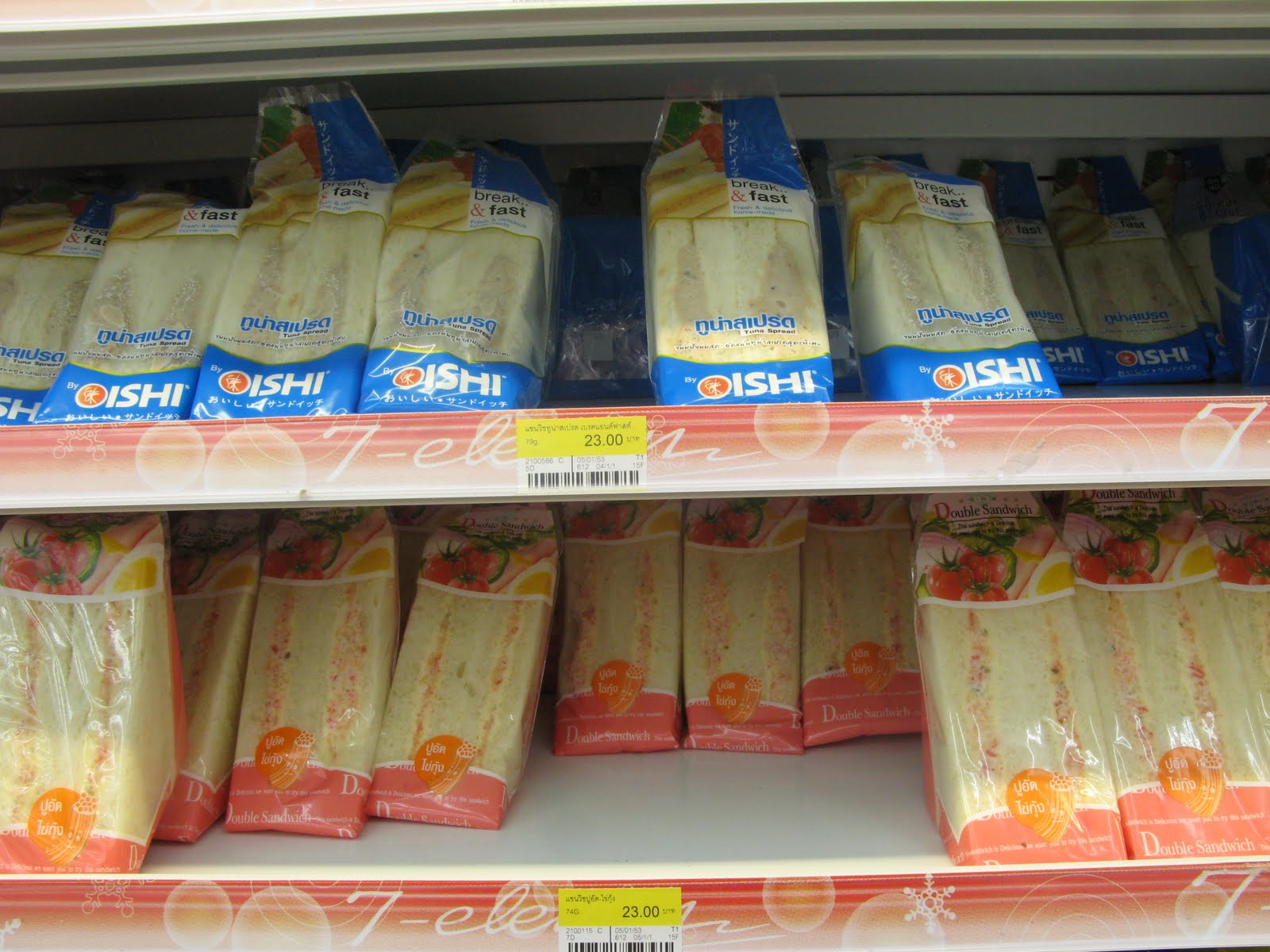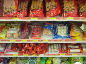 I love travelling to different countries and tittering at all the amusingly-titled food packaging – ‘Bimbo’ bread, ‘Fart’ candy bars, ‘Crap’s’ chocolate etc. (I’m so mature). I’m also obsessed with finding out what strange food habits other nationalities have. We Brits have some really poor food heritage that make foreigners cringe: Marmite, SPAM, stinky hot dogs with onions from dodgy geezers around Oxford Street tube station and withered ‘elephant leg’ kebabs or pickled eggs on a Friday night after the pub. When I first travelled to Thailand five years ago, I thought I knew roughly what to expect in the realms of wierd food offerings: perhaps dried squid chews, smelly durian fruit and the odd dried insect. But I didn’t realise you could find ‘dirty’ food as well – Thais are crazy for stuff like day-glo Frankfurters and tinned condensed milk!
