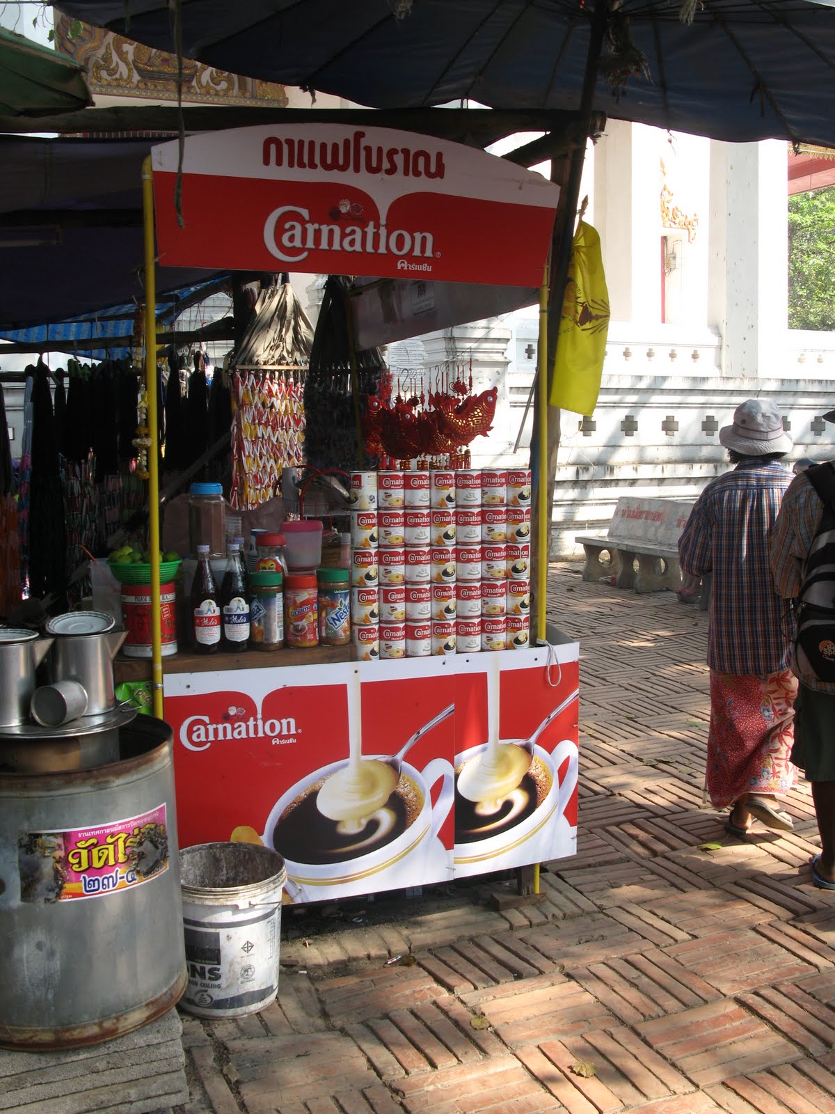 Another thing the Thais seem to lurve is tinned Nestle Carnation condensed milk. They chuck this gloop into fruit smoothies (urgh – why?) and all hot beverages. I can’t think of anything less refreshing in the sweltering tropical heat…