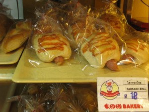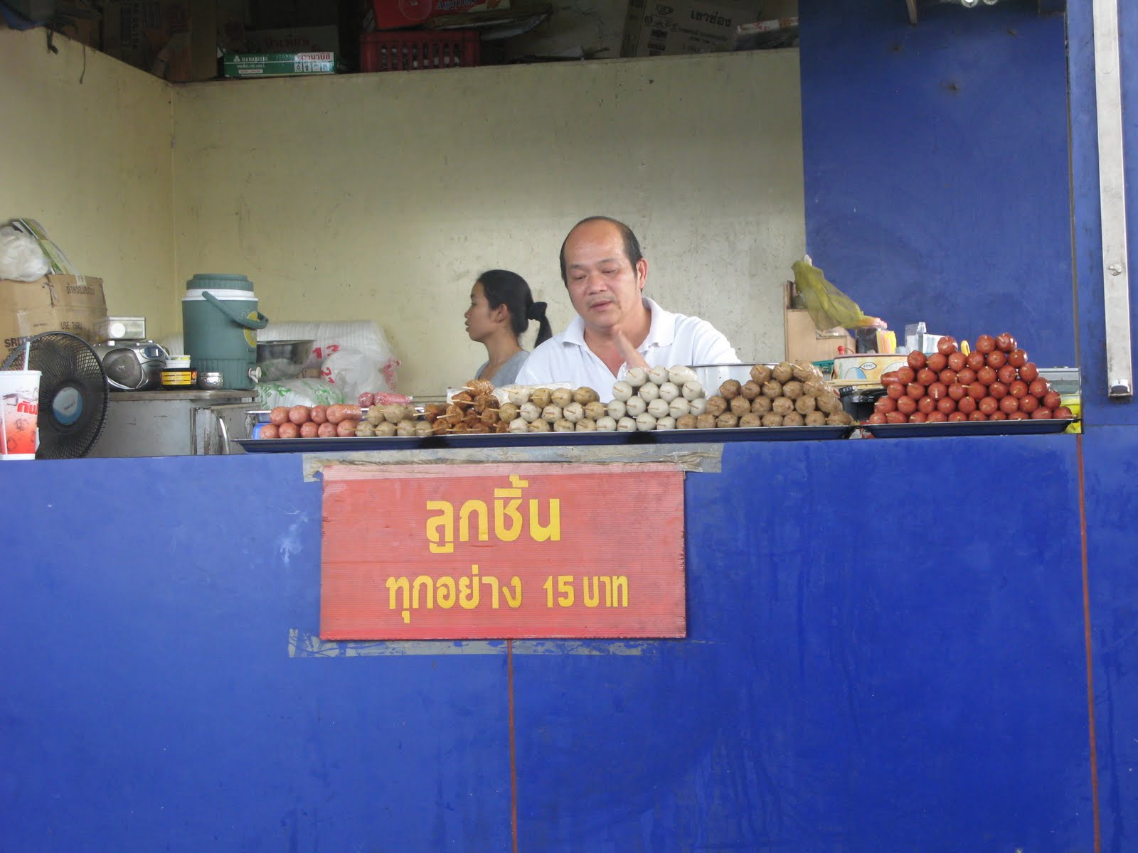 Observe the Thai love of processed meat – they are just crazy for Frankfurters, those nasty (I think) pink processed sausages in vacuum packs. You’ll see them being grilled at street stalls on kebab sticks, sometimes carved or etched into different shapes, or just lying in piles of unappetising shades of beige and pink. Wherever you are in Bangkok , a Frankfurter kebab is never more than a few metres away. You can get them at train and bus stations too, in case you get a dirty pork craving on the move.