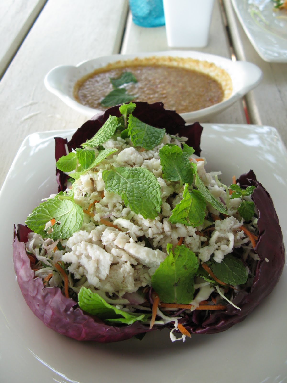 On a slightly different note, I am including the following but in no way does it fall into the dodgy junk food categories above: this was an amazing sea bass salad eaten at the lovely Shantaa Resort on the island of Koh Kood. It’s almost so pretty it hurts, right? It came with a sweet/savoury peanut sauce on the side. It was crunchy, salty and sweet, and really addictive. I badgered the hotel manageress for the recipe: she wouldn’t give away the quantities, but told me that the sauce contained fish sauce, garlic, chilli and…caramel peanut brittle! After a week of eating this tooth-rotting sauce every other day, I have just booked to see the dentist…