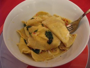 The result – Ottolenghi’s goats’ cheese ravioli: