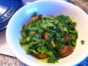 Srinkle with chopped coriander and serve with steamed greens and basmati rice. The finished dish: