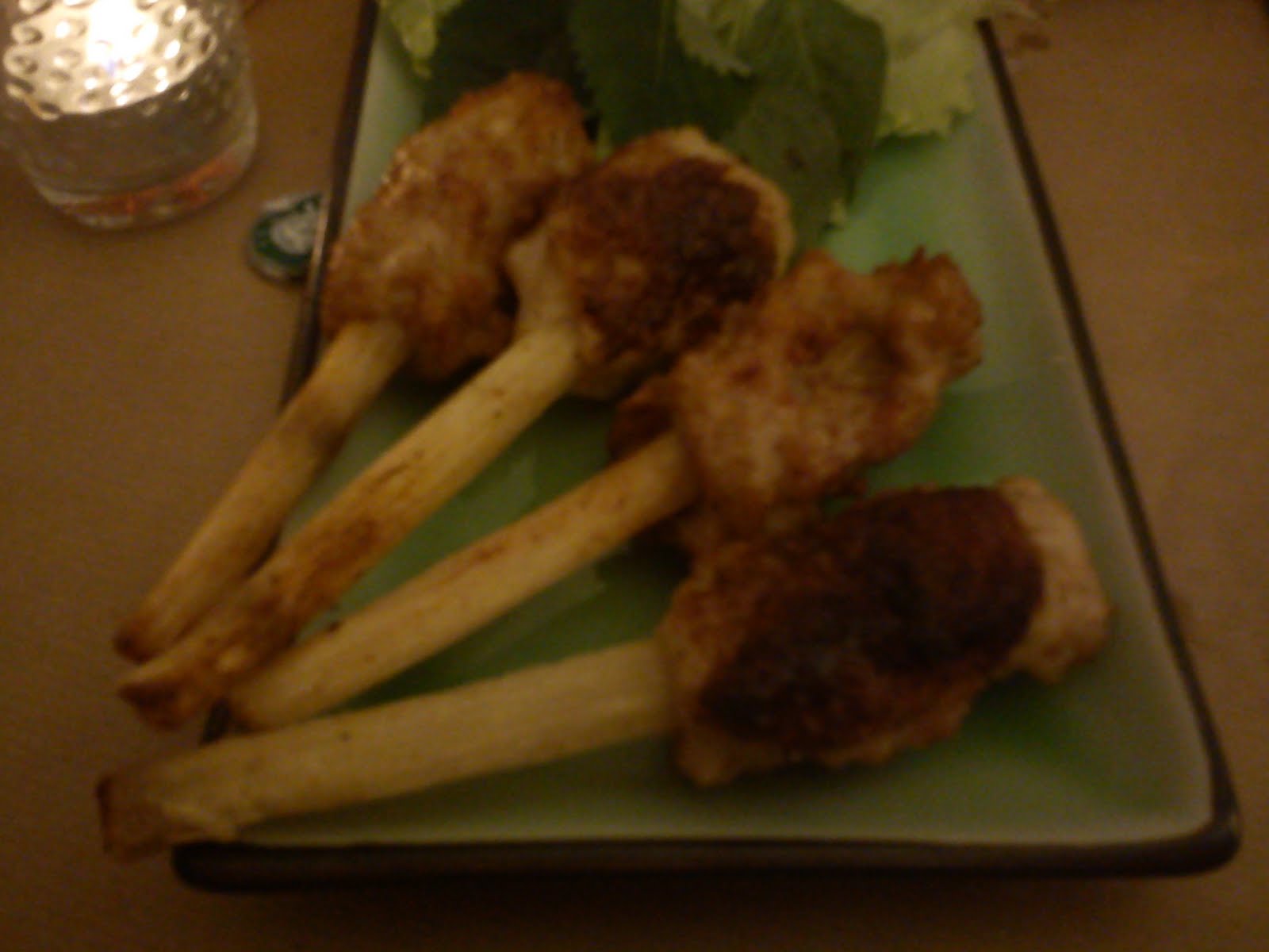 Prawn and squid paste on sugar cane – yummy sugar cane juice squirts out when chewed!