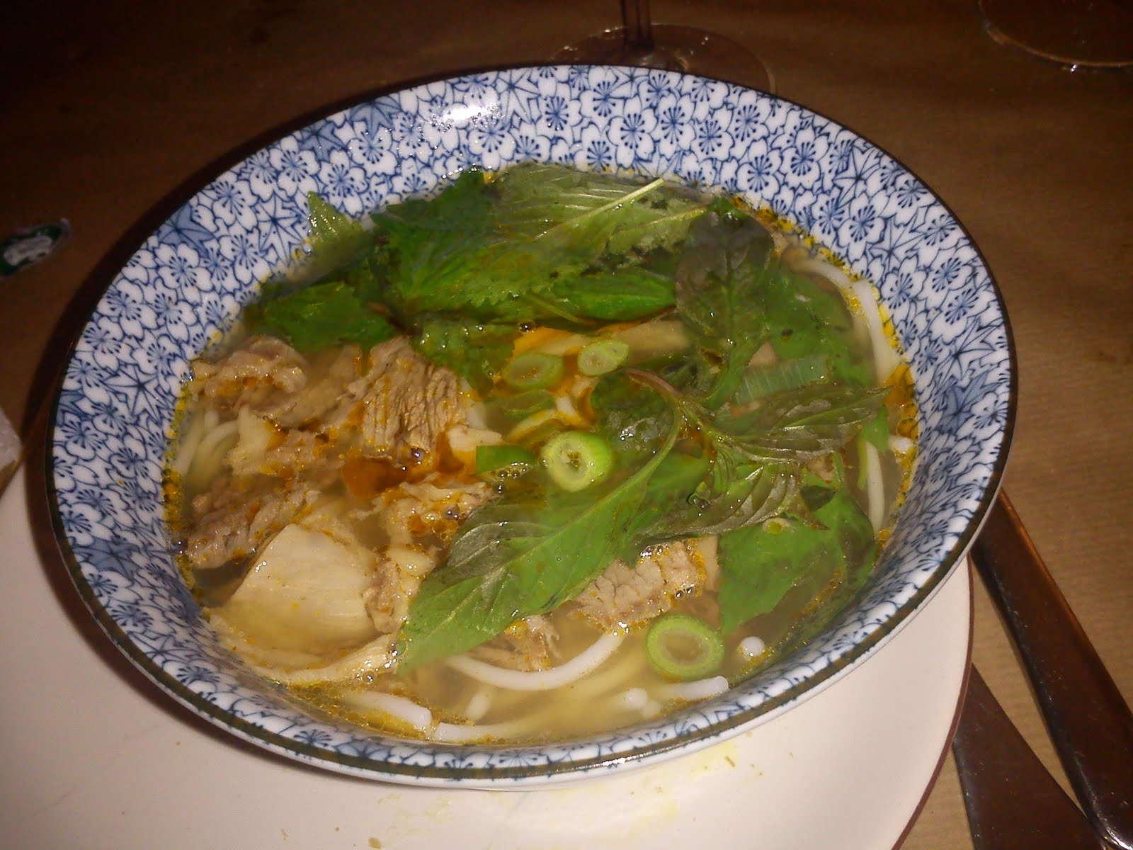 Bun Bo Hue (spicy beef noodle soup) – fragrant and light with pieces of tender beef: