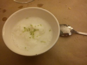 Coconut sorbet – absolutely delicious and light, just the right thing to end the meal: