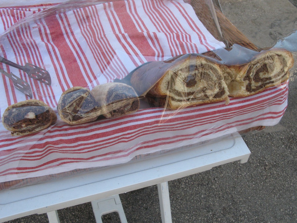 There appears to be a national obsession with wafer biscuits – you can buy huge packs of biscuits and wafer sheets in most supermarkets, and I found this rolled wafer chocolate log (below right) for sale in Split food market: