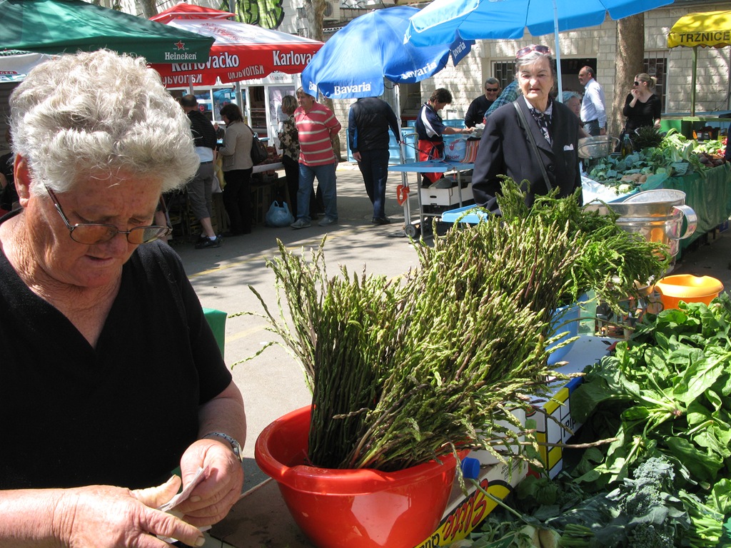 The food market in Split was probably the best gastronomic experience of the holiday – people sell bright, fresh fruit and veg, mostly grown on their allotments, and you can even buy kilos of live snails and several different types of fresh asparagus. Women stand holding bags of eggs and waving bunches of fragrant lilac, murmuring for you to go and buy them.