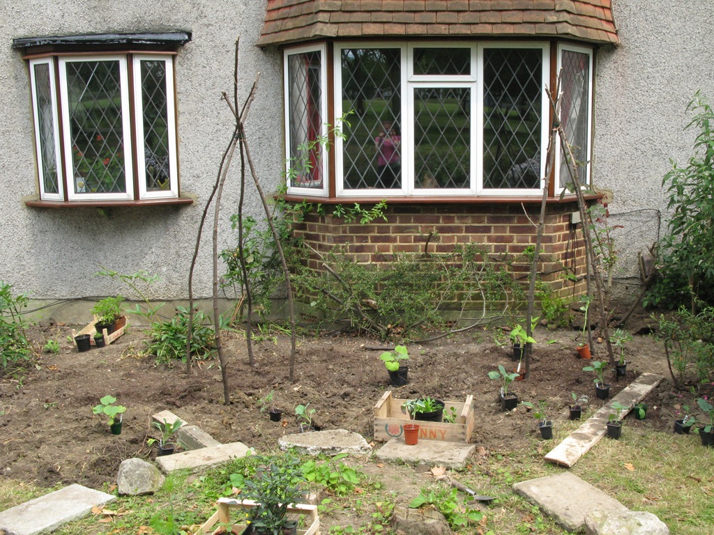 Instead, I came to my senses and decided to preserve relations with my neighbours, who would have no doubt come round with rifles and shot us if we’d gone ahead. I asked local food writer-cum-green-renegade Rachel de Thample if she was interested in having some space in which to grow produce, and she said YES. She has since transformed our front garden into a vegetable plot. Much more sensible. Things got properly started in the last couple of weeks, and Rachel has been really busy digging, grappling with concrete and lugging hefty sacks of compost about the place. She is a hardcore woman of many talents, and my husband and I are now feeling rather sheepish and lazy, because she has single-handedly transformed the space with no help whatsoever from us!