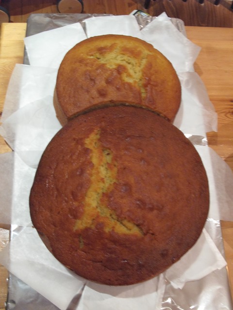I used double the quantity of this delicious vanilla syrup-soaked sponge cake recipe, and adapted Smitten Kitchen’s frosting recipe by adding a 300g tub of cream cheese to the mixture. When I had used the pale frosting to make the face and tummy, I then coloured the remainder with two melted 100g bars of Green & Black’s 70% dark chocolate to make the brown frosting for the body and wings.