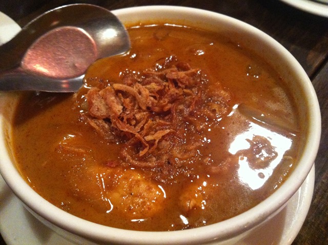 Delicious Massaman curry – rich and deep with warming spices that build quickly to fiery hot in your throat…