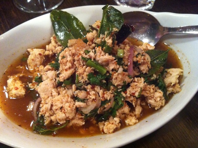 My chicken laab gai (spicy salad) was bursting with lime leaf, lemongrass and citrus – devilishly spicy!