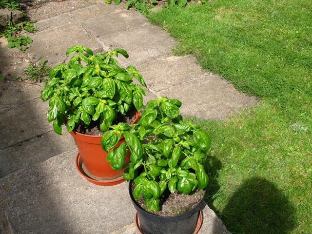 I have been growing my own basil outdoors all summer – I got three baby plants from our local food market in June. The stall I get it from, Brockmans, supplies gorgeous produce from its biodynamic farm, and I have no idea what kind of organic craziness they put in the potting soil but their basil is the best I’ve ever tasted in this country – it smells as strong as superskunk and the flavour is off the charts! It grows like a BEAST.