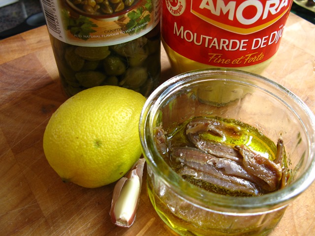 This is super nice served with firm, white fish like a whole roasted sea bream (just roasted in the oven rubbed in olive oil and salt, its tummy stuffed with lemon slices) and chips! Literally a dinner fit for champions. Get some nice dry white wine in too. If you make up a batch and have leftovers, you can use it as a sandwich spread to accompany cold meats or mix it into a salad dressing. Keeps for about a week if you put it in a jar and pour over 1/2 cm olive oil to keep out the air.
