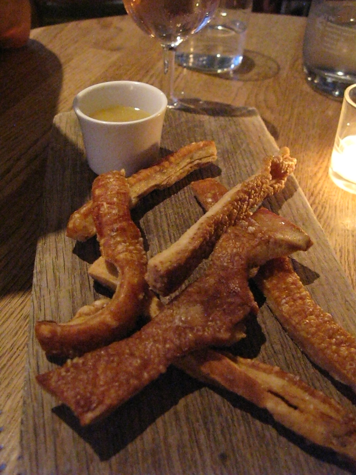 I must mention that I broke a lifelong view of finding pork scratchings disgusting. Normally the sight of any crackling makes me cringe, especially if it is a tiny bit chewy, gummy or has hairs in it. Urgh. But the ones they make at Brawn are shatteringly crisp with a yummy porky flavour, like exceedingly posh Gallic Frazzles. I wolfed them down.