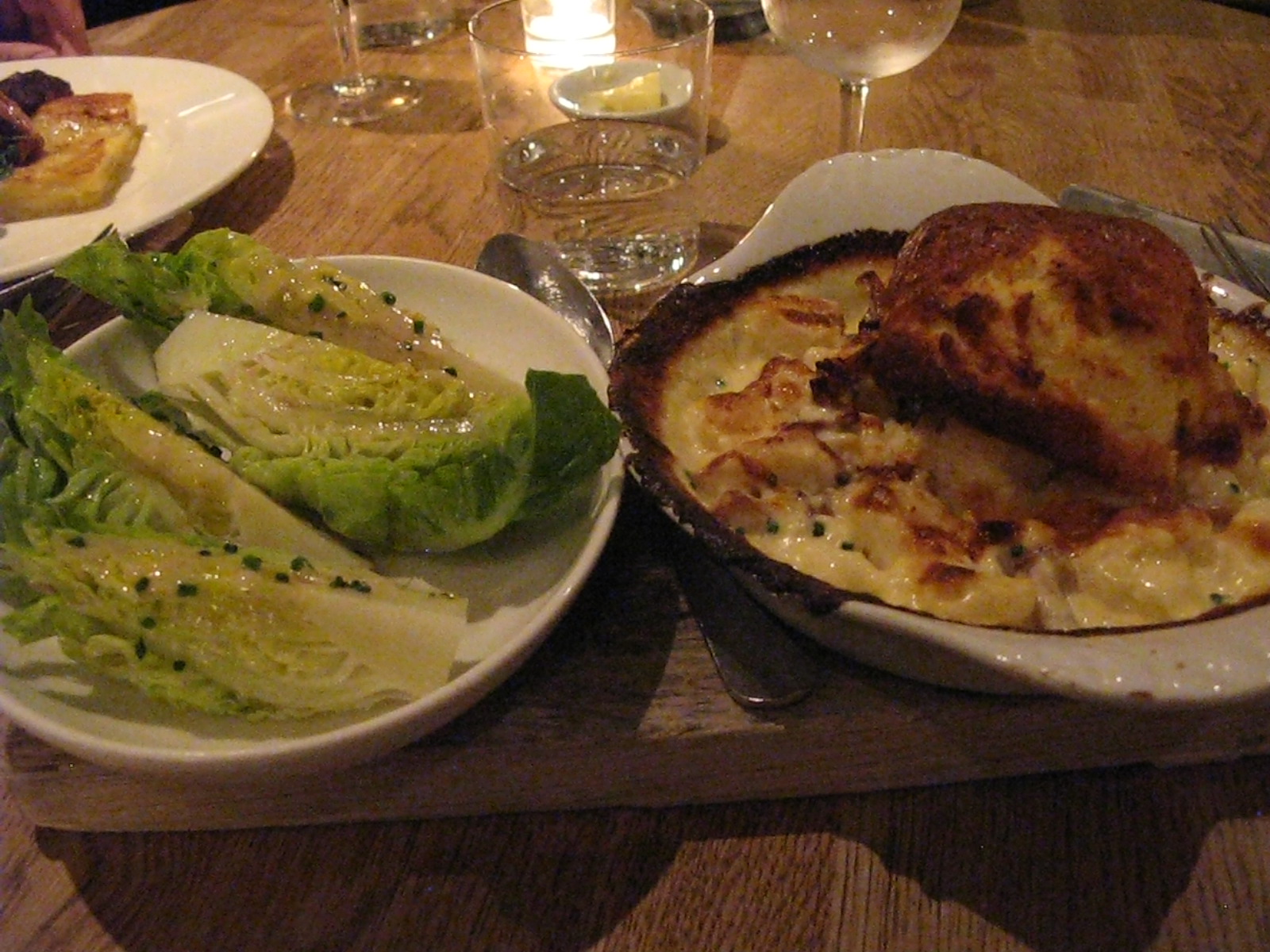 And now THIS: my artery-busting cheese soufflé atop a silky Gratin Dauphinois with a gem lettuce side salad – I nearly died right there. My eyes did some serious rolling into the back of my head: