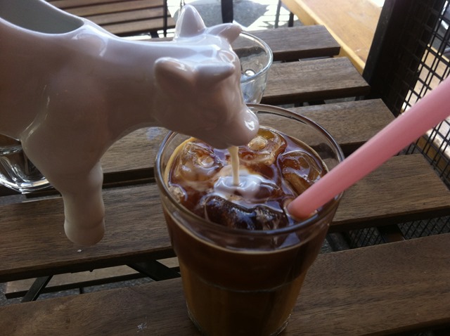 Ooh: cute cow jugs! Ha ha! Great iced coffee, too: