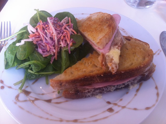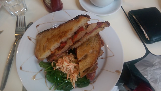 Toasted sandwiches are my benchmark of any decent establishment – and this ham and cheese one was a thing of beauty: pleasingly hefty slices of sourdough bread brushed with butter, oozing punchy cheddar and good quality ham. Side salad was thankfully free of raw onion (my pet hate) and dressed with something delightfully lemony and fresh: