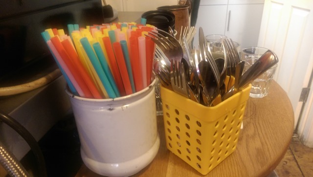 Mark has done wonders with the shop space, filling it with beautiful mismatched vintage 50’s furniture and stunning Victorian shop shelving. I swoon over the Formica tables and novelty milk jugs. Everything has personality – a world away from your faceless Costa coffees and Nero’s. There is no wifi yet – hurrah!