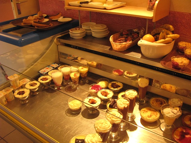 The dessert cabinet, which includes cheese as well as all manner of tooth-rotting sweet puds: