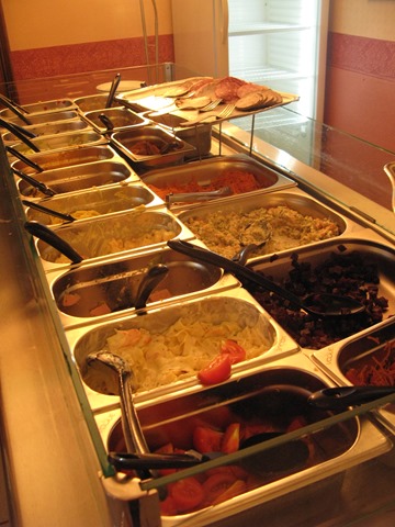 Ok, so the buffet looks a bit scary in a school dinners sort of way, but I kid you not, it was all excellent. You’d find all the traditional French buffet items – from mushrooms a la greque and crudités, to homemade rustic paté and sliced cold meats. We got stuck in, it was all great: