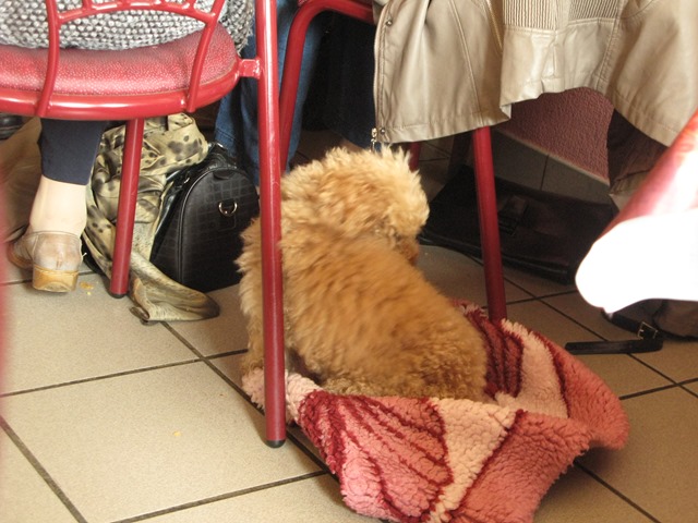 Aw – someone’s brought their poodle and he’s got his own bit of carpet to relax on!