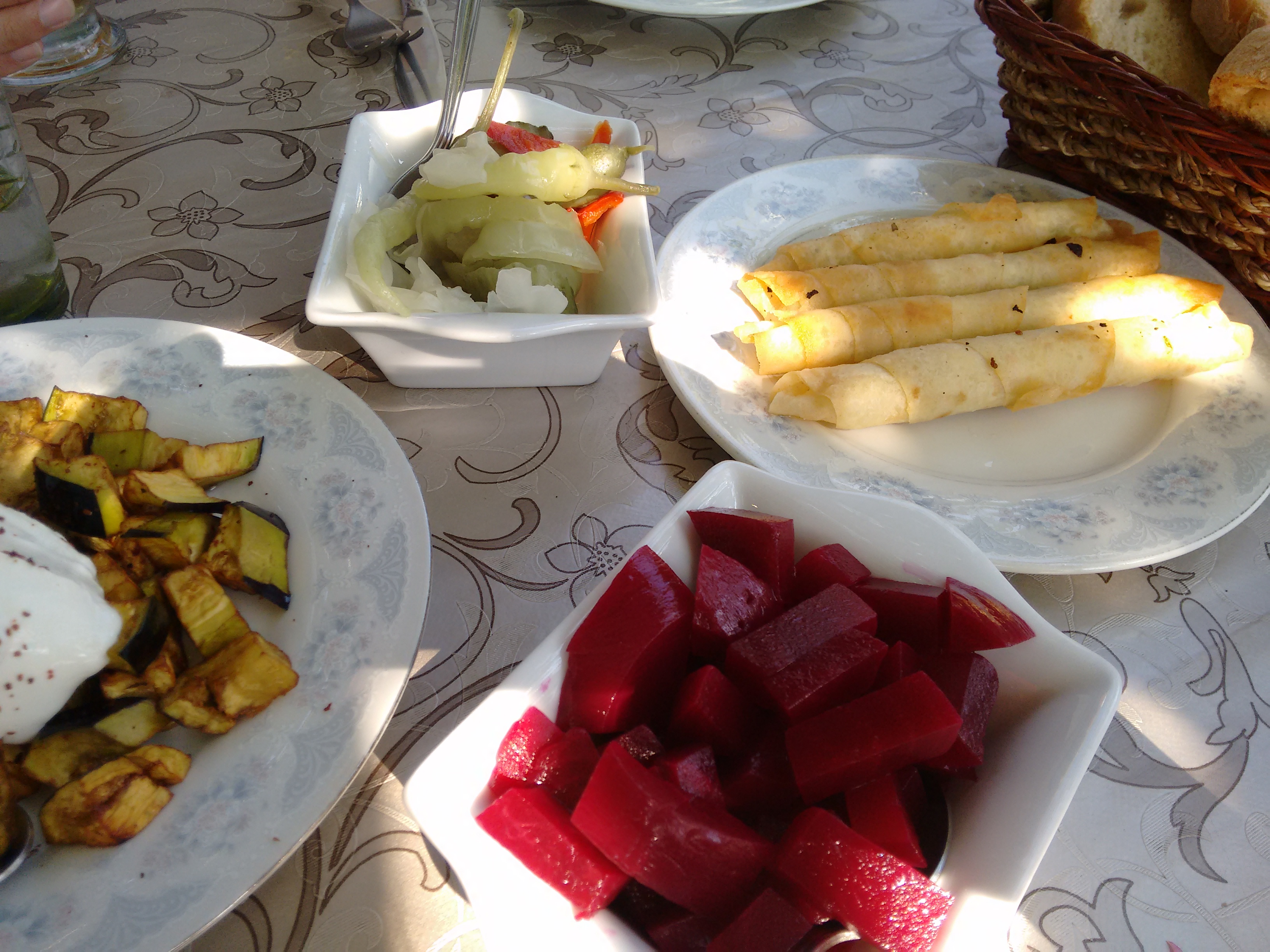 Benoz restaurant, Algadi beach – like heaven on earth, and mysteriously deserted every time we lunched there. The freshest fish, the flakiest cheese borek pastries, a friendly family running the joint: