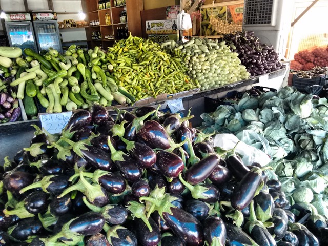 Grocery shopping at the roadside, where the fruit and vegetables are piled up in great, glossy shining piles: