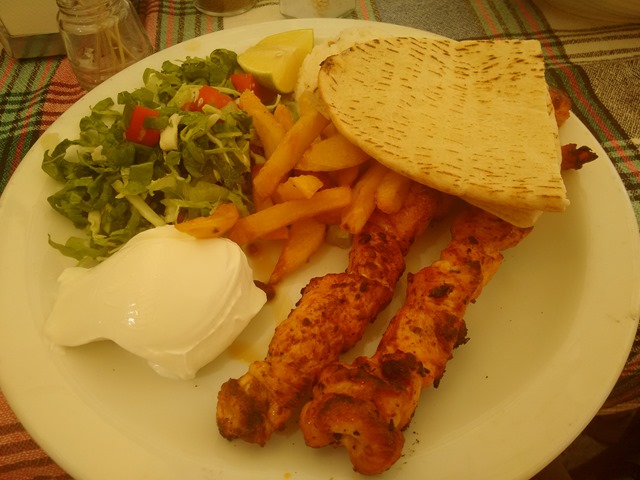 Chicken Shish, practically the national dish, which comes with rich, silky yoghurt and warm buttery pitta (I’m drooling):
