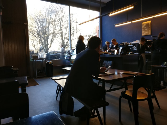 Anyway, eavesdropping aside, an immensely positive thing about the cafe is that it is calm and elegant, not in a pretentious, fussy way, but in a sort of noble, relaxed Scandinavian way. You feel elevated by the dark blue walls, the dark wood and the minimalist decor. You could come in and tap away at your novel or read a book – nobody would bother you. They sell interesting dark rye breads, cakes that I’ve never seen before, and a festive-looking drink called ‘glogg’. I wish to come back often, but fear it’ll be another year at least before I get some time off again. Must. Try. Harder!