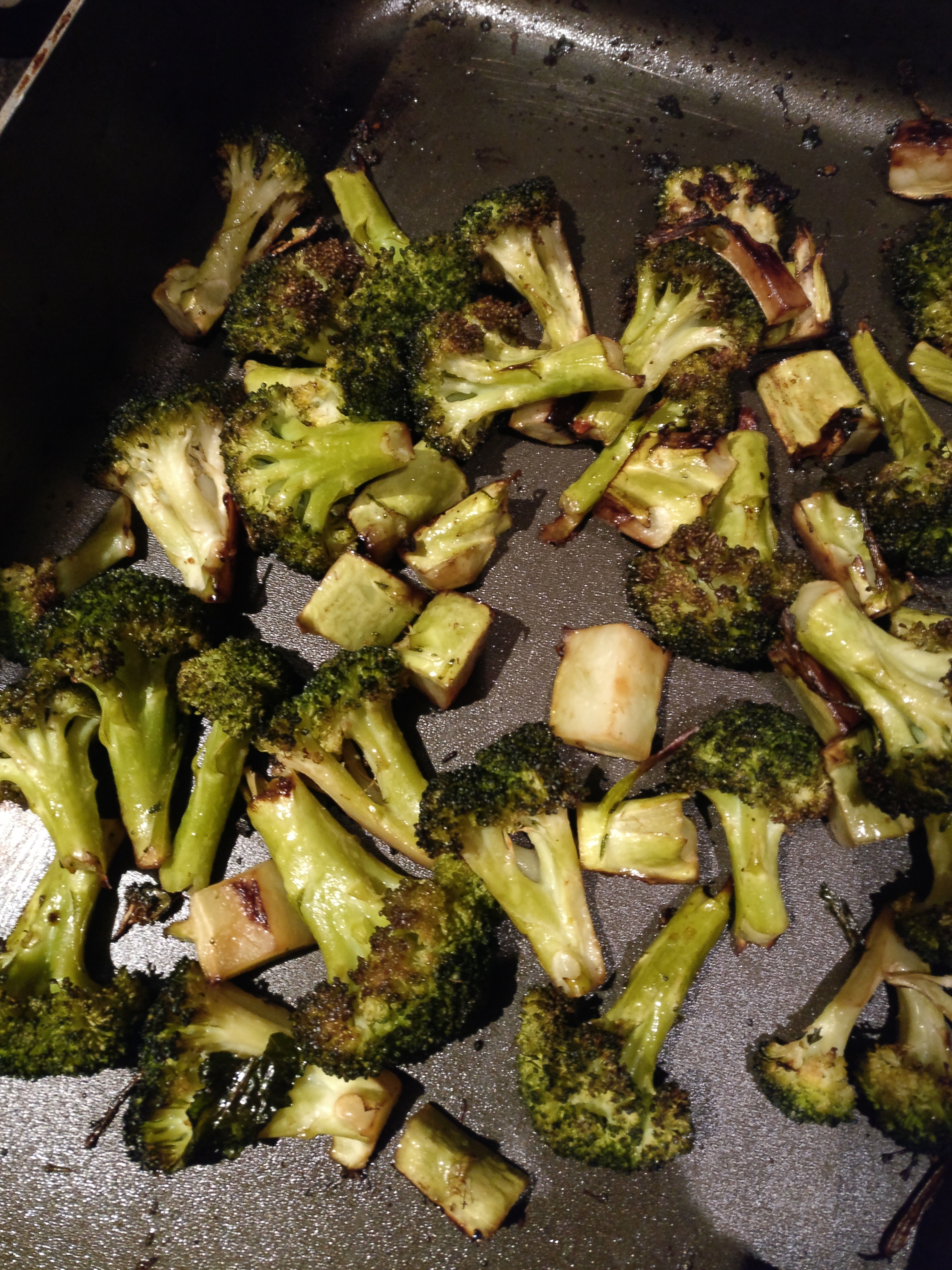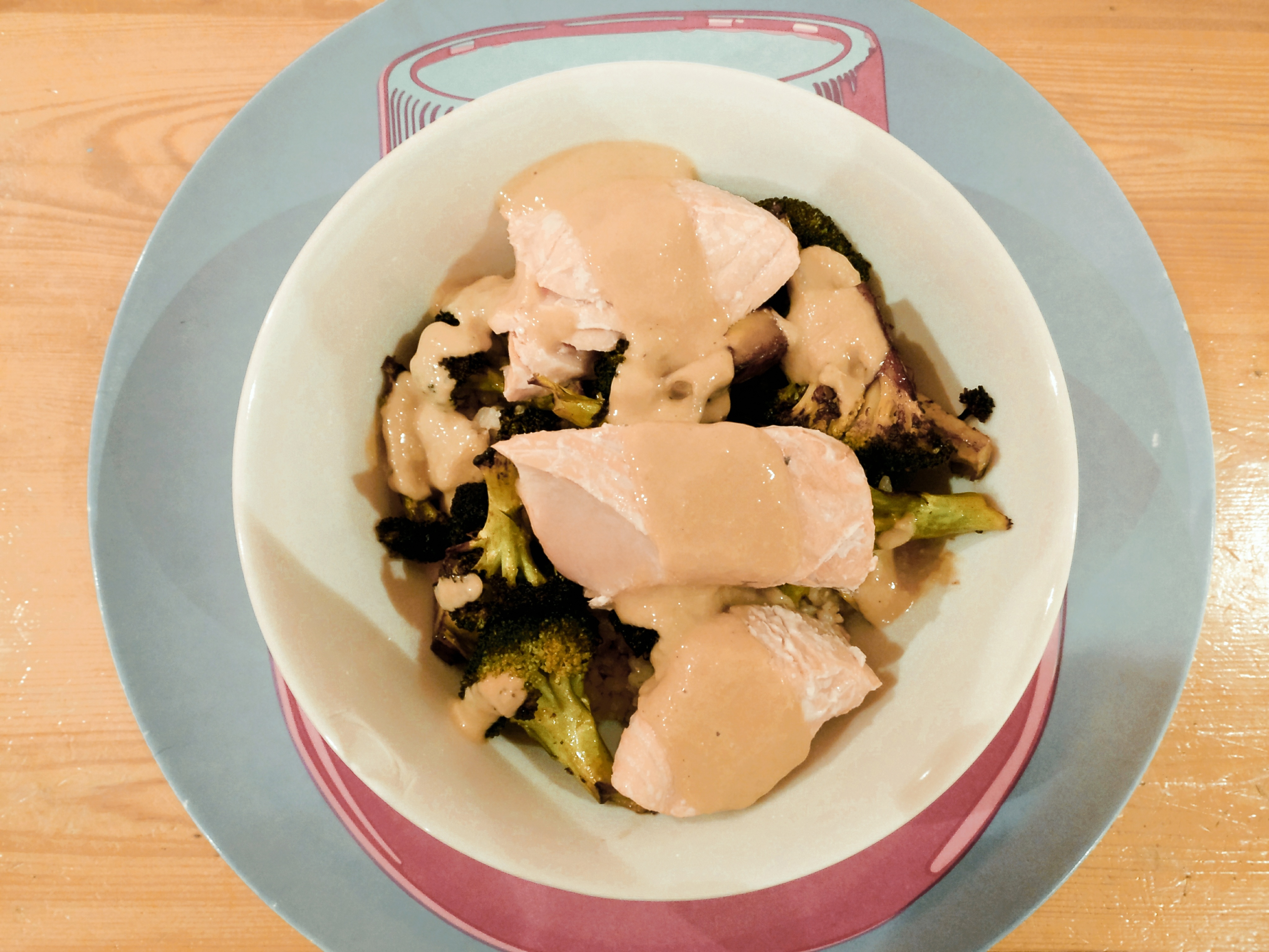 To make a rice / veg / fish bowl, toss some broccoli and other veg of your choice in a little oil, sprinkle with seasalt and then roast in a hot oven at 200C until going slightly crispy at the edges.