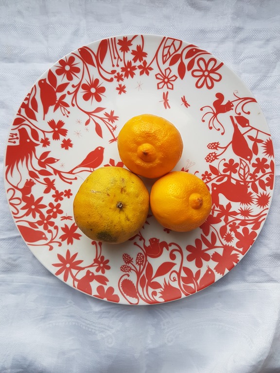 Bergamot lemons. Who knew about these? I certainly didn’t. I honestly thought there was probably only one kind of lemon, the usual kind that I squeeze on everything. To be honest I don’t spend much time thinking about lemons. Well. There are actually different types of lemon lurking out there, quite independently of me knowing about them. Bergamot is what is used to flavour Earl Grey and Lady Grey tea. I should know this, as Earl is my fave brew of all time. I am so happy to be surprised. When my friend R gave me a bergamot lemon to try out, I marvelled at how different it looked. Paler, more knobbly and with a whiff of exotic scent in the skin.